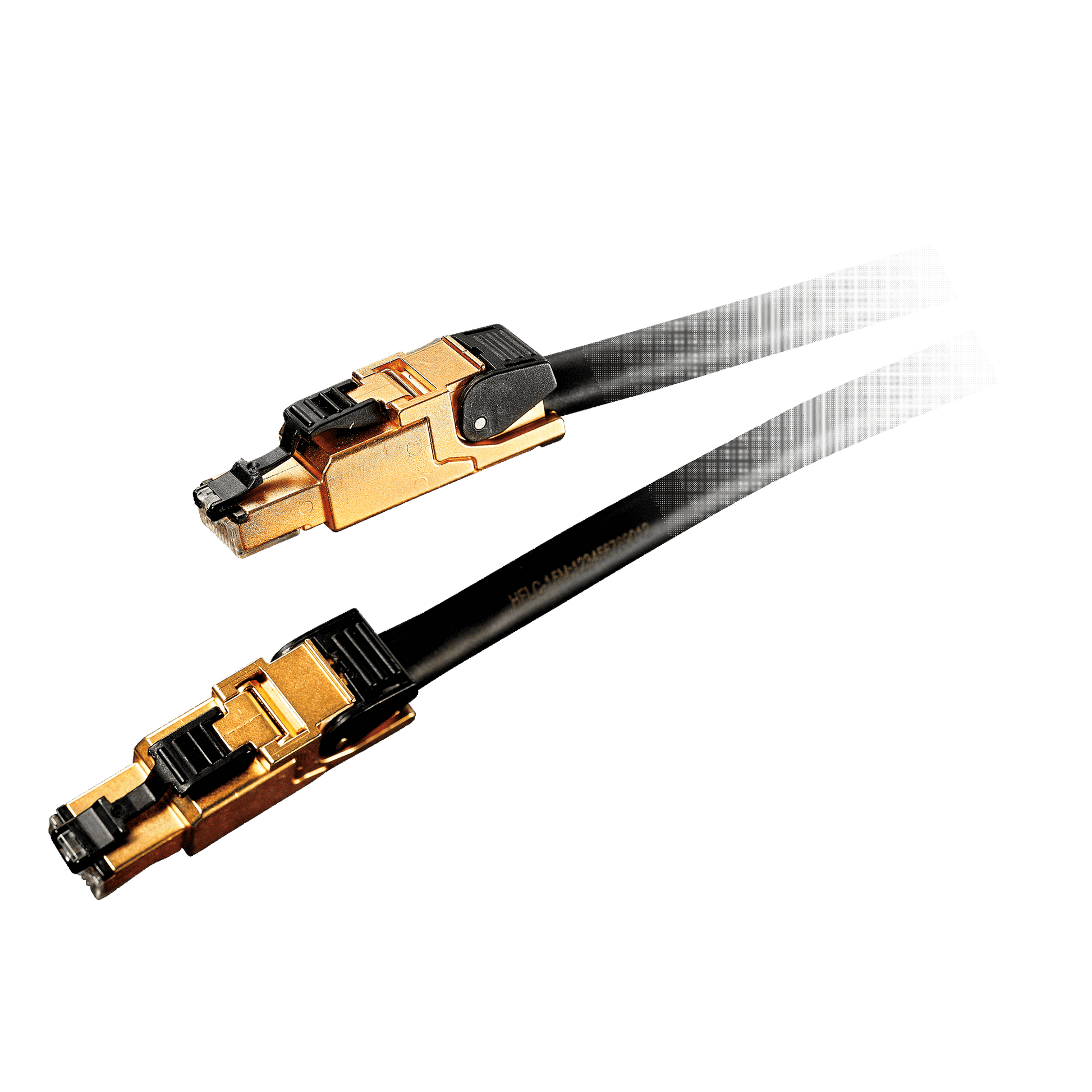 這些專為音訊應用設計的 Cat 6A LAN 線纜採用 Telegärtner Japan Limited 產的 MFP8 RJ45 屏蔽鍍金插頭。同heart橫截的積線直徑為 7 สาย 26 AWG 鍍銀無氧銅 (OFC) 製成的導線,並分成多對雙絞線,可反轉設計確保線材易於安裝。