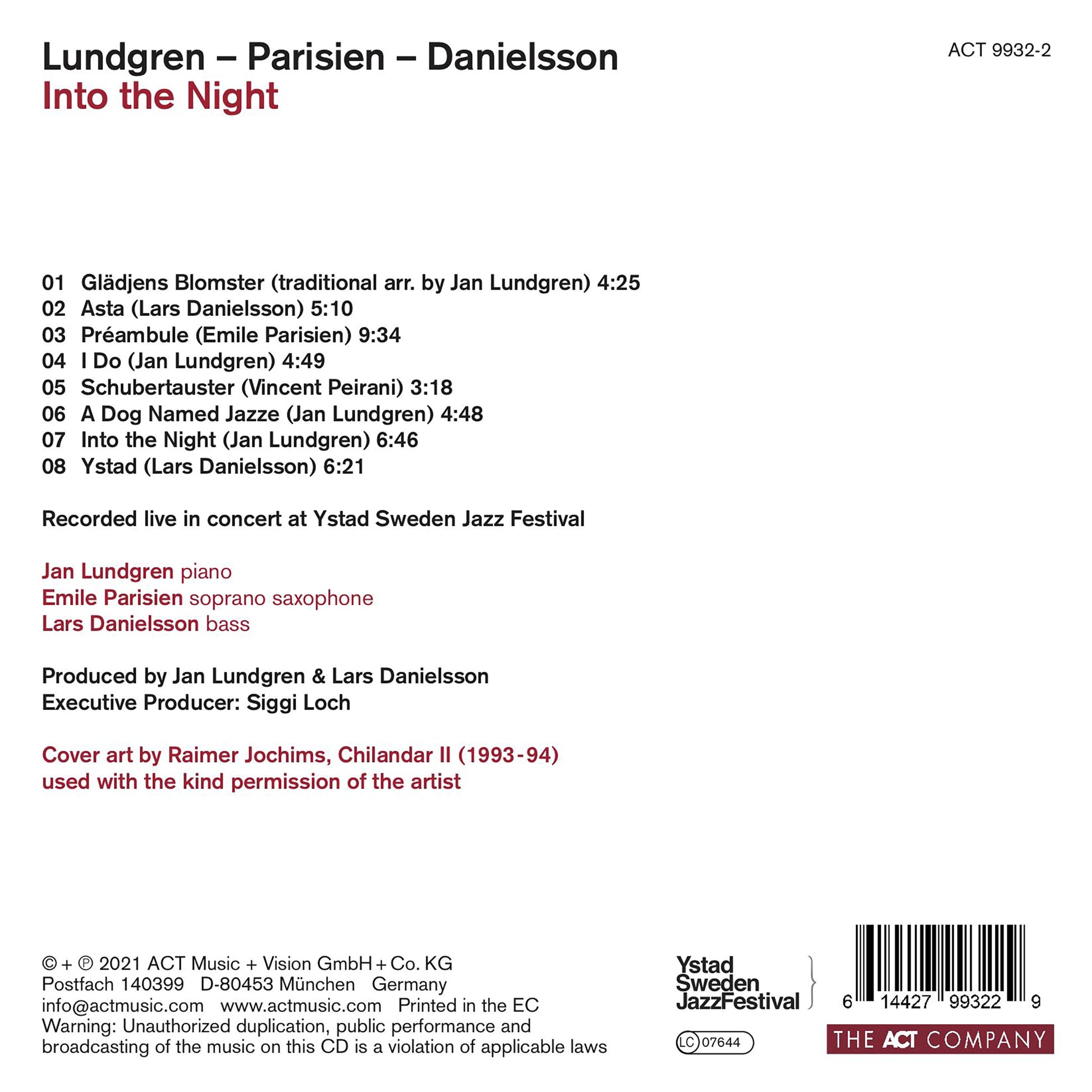 - Jan Lundgren Into the Night - ซีดี