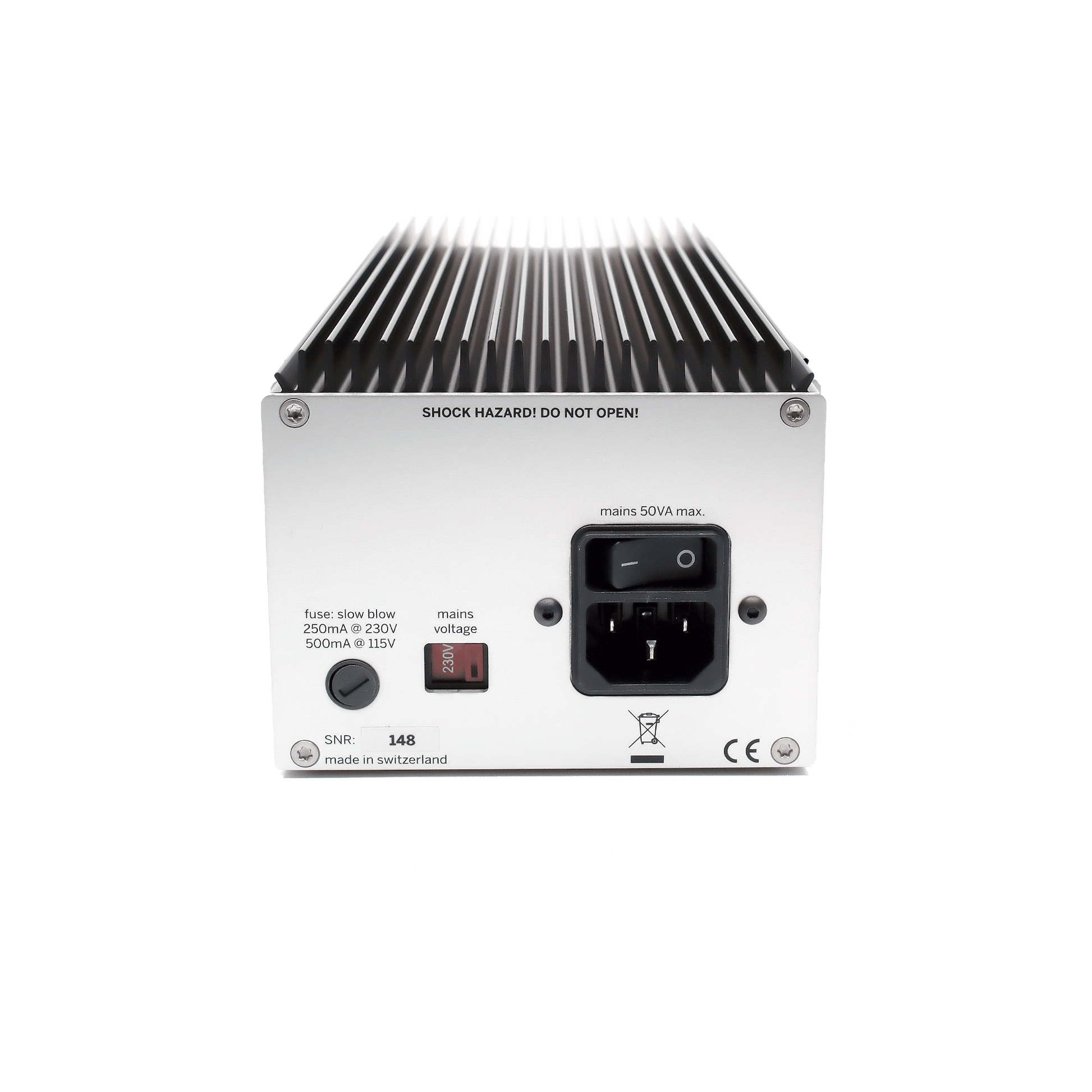 - 保險絲額定值:115 伏特時 500 毫安培慢熔斷,230 伏特時 250 毫安培慢熔斷。